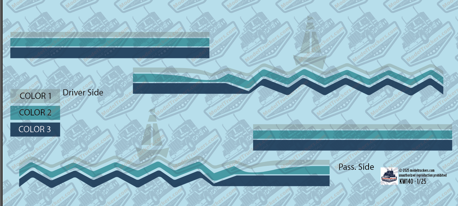 Give your Kenworth scale model truck a customized look with our stripe waterslide decals. Choose your color scheme from the options below. You must make a selection per choice.