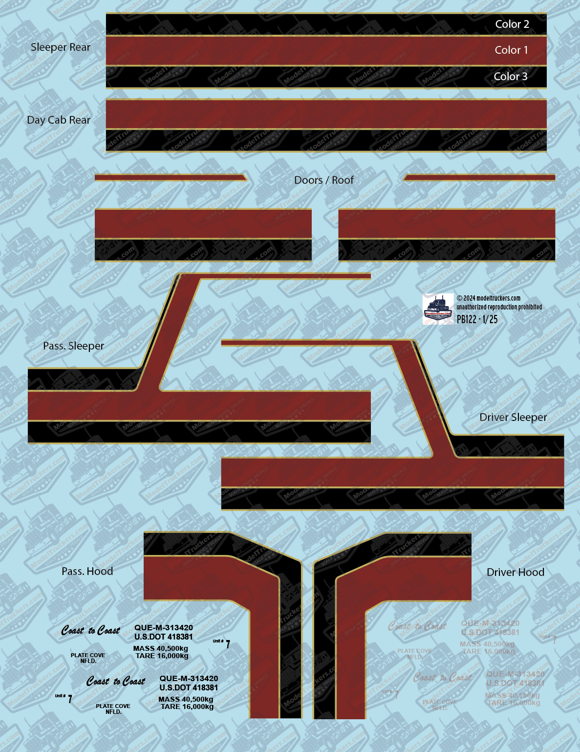 Give your Peterbilt truck a customized look with our factory stripe waterslide decals. Choose your color scheme from the options below. You must make a selection per choice.